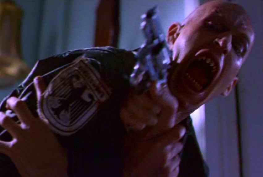 Without getting further into the story, Daniel Von Bargen KILLS IT as Nix, with one flick of his creepy eyebrows sending me into fits of heebie-jeebies, and the cult members, well, religious fanatics with weapons are always frightening, non? But particularly here, in the way they dispatch of non-cult members and fixate on their “god” with hair-pulling, orgy-esque abandon.