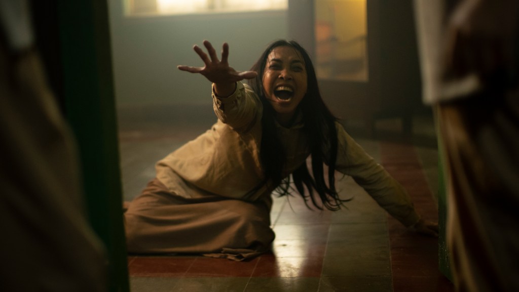 When everyone arrives, caretakers Maman (Ade Firman Hakim) and his wife Siti (Sheila Dara Aisha) start acting very, very strange, and it’s only a matter of time before the Queen sends hordes of bugs and escalates each person’s fears into life-threatening acts they commit under her control. Once the blood, bugs, and bile get started, long-BURIED secrets are uncovered which are tied to the disappearance of a former teacher, Ms. Mirah, and a student named Murni.